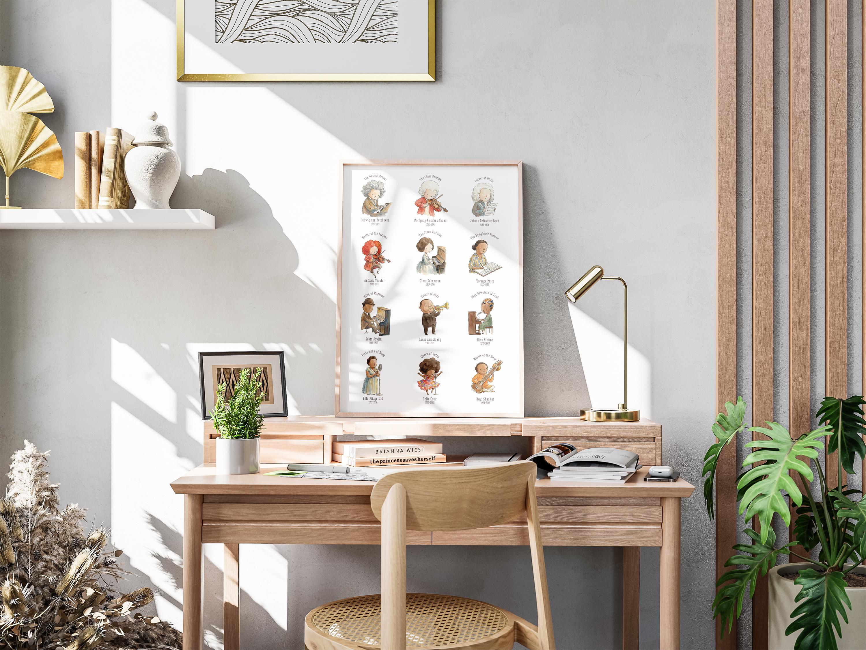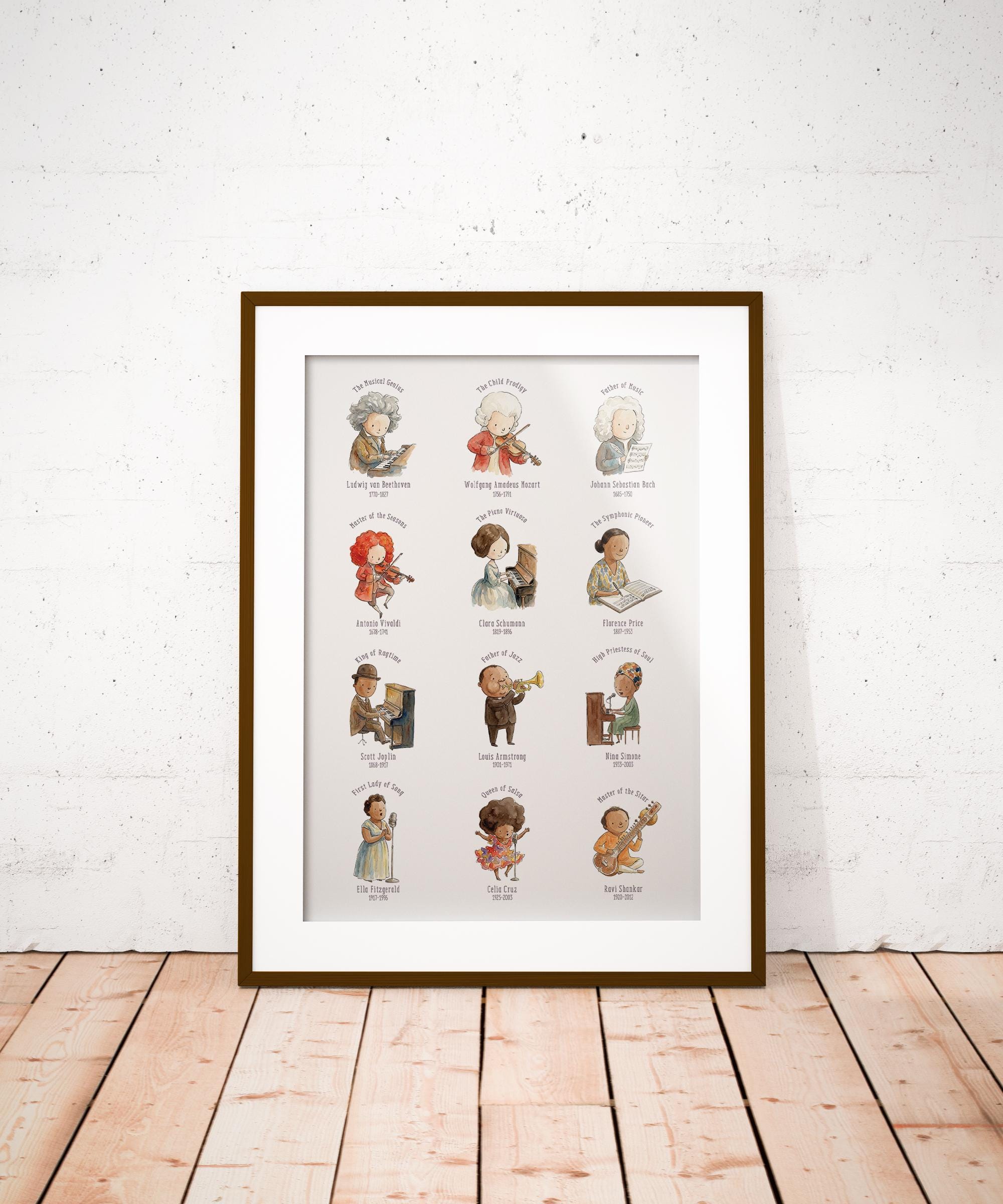 Discover the perfect addition to your music classroom or home music space with our Musical Trailblazers, 12 Famous Musicians Poster. This captivating digital download features beautifully illustrated portraits of legendary composers and musicians, each celebrating their unique contributions to music history. Designed to inspire, educate, and add a touch of artistic charm, these poster ideal for music teachers, students, or anyone passionate about music.